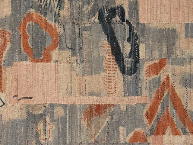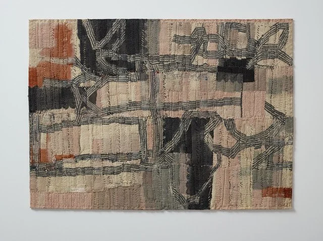 “My approach to making work is one that could be seen to sit within a number of Textile traditions, though not necessarily comfortably; I prefer to think of it occupying a space in-between. Whilst I stitch, I am not an embroiderer and whilst I construct, I am not a Weaver or Tapestry maker. I stitch through in order to laminate layers of painted cloth together – perhaps they are quilted, perhaps not. The tradition that I feel most strongly connected to within Textiles is that of the abstract image- maker, a rich and deep tradition that allows for a continually evolving, vital and dynamic abstract visual language, and one that has developed throughout history and across all cultures.”